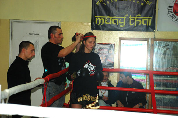 Bardzo ciężkie zadanie stanęło przed naszą zawodniczką Anną Cora. Zgłoszono ją do walk ligowych jednak omyłkowo organizatorzy zakwalifikowali ją do Pucharu Polski w ramach Turnieju Kobiet. Tuż przed zawodami Ania stanęła przed decyzją czy startować w lidze amatorskiej, czy w półzawodowym turnieju. Decyzja była bardzo trudna gdyż Ania do tej pory nie startowała na zawodach w K1 czy Muay Thai. Ania jeszcze nigdy nie odmówiła walki! Nie po raz pierwszy pokazała charakter! Pomimo znikomego doświadczenia w Muay Thai zdecydowała się na zmagania turniejowe. W trakcie losowania walk Ania miała szczęście. W walce ćwierćfinałowej otrzymała wolny los. Swoją pierwszą walkę stoczyła od razu w półfinale z doświadczoną zawodniczką Raft MT Rzeszów Agnieszką Sojdutka ( posiadającą czarny pas w Karate ). Walka była zacięta jednak przeciwniczka mocno okopała Ankę. Pomimo przegrania walki półfinałowej zajęła III m. w Turnieju Kobiet. Mamy nadzieję, że to doświadczenie jedynie umocni Anię w dalszej zawodniczej karierze. Po walce organizatorka imprezy pogratulowała odwagi twierdząc, że w Muay Thai liczy się upór i charakter do walki. My również gratulujemy odwagi i występu.