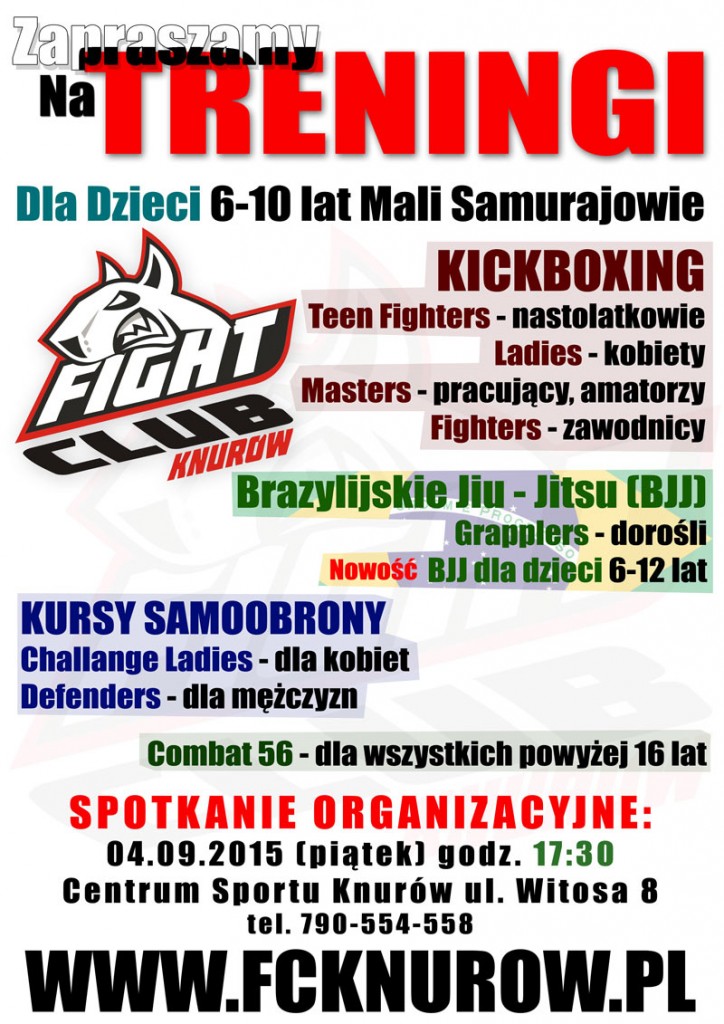 Fight Club Knurów ogłasza nabór! Zapraszamy wszystkich chętnych na spotkanie organizacyjne, które odbędzie się dnia 4 września o godzinie 17:30 w siedzibie klubu przy ul. Witosa 8!